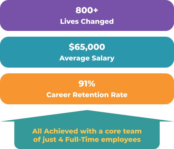 Learn MoreHelp fund training, coaching, and access for people working toward stronger careers and lasting stability.